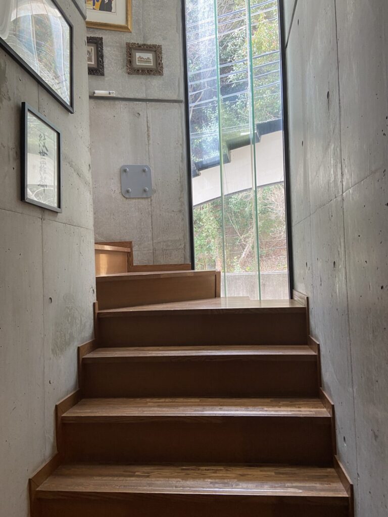 The second-floor balcony has a view of Osaka Bay