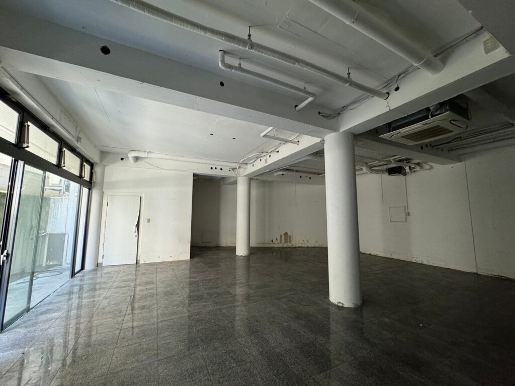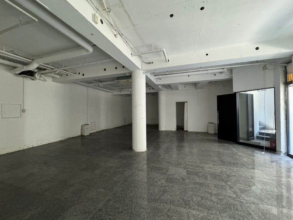 Spacious 125sqm commercial space in an attractive-looking building on the iconic Hunter-zaka street in Kitano area popular with tourists and locals. Stylish, high-ceiling space with separate stairs and entrance. located in the basement gives the feel of privacy and serenity with plenty of light coming in through large windows on a wide balcony. With a private bathroom and air-conditioning in the ceiling.
