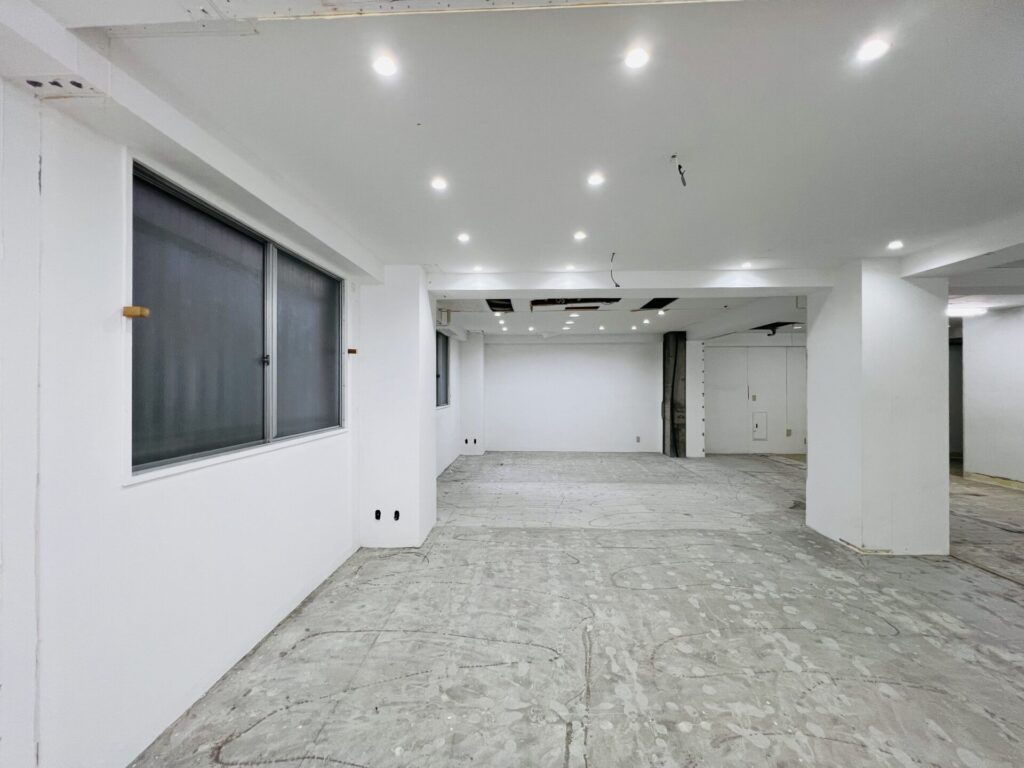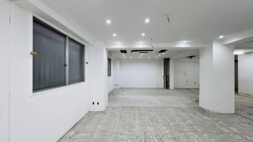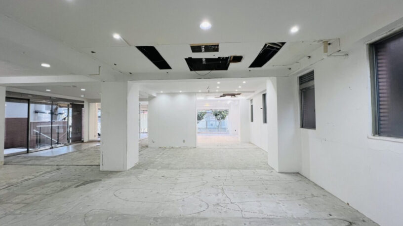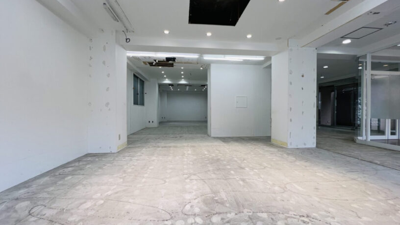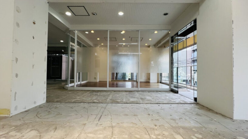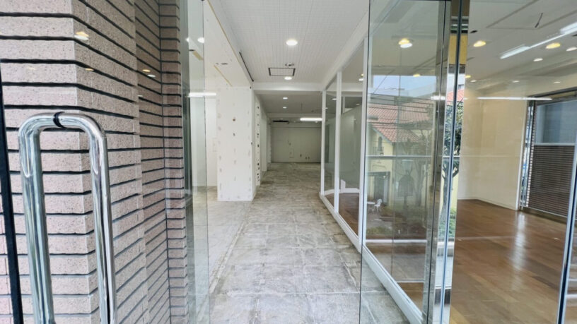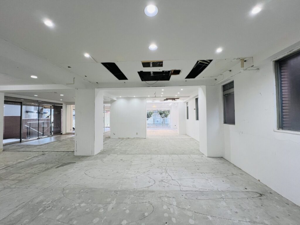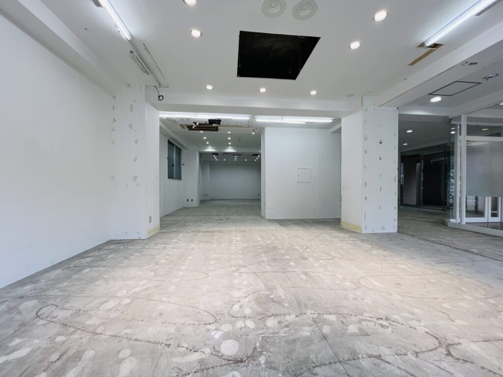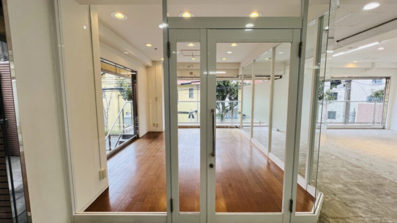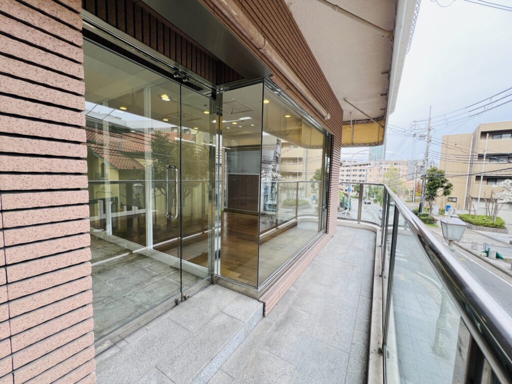 Located along one of the popular streets in Kitano. Spacious 140 sqm commercial space. A part of the space, enclosed with floor-to-ceiling glass partitions (partly translucent) and wood flooring, would be ideal for a showroom or reception room, etc. The rest is an open space and the layout and interior can be designed as you wish at your cost (it is required to restore to the original state when moving out). The L-shaped balcony and windows/doors on south and east sides bring in plenty of light and air.