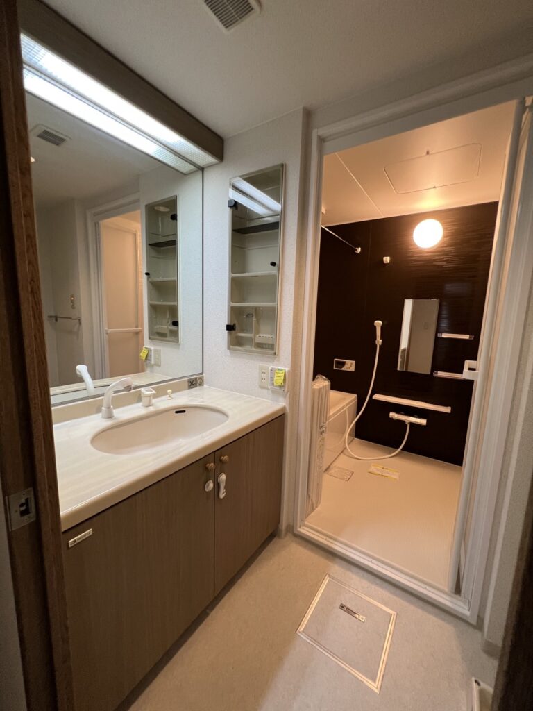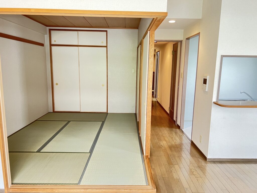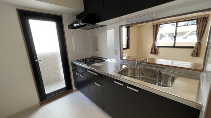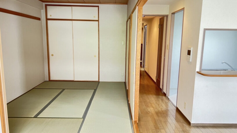 A corner unit with spacious wrap around balcony gives you plenty of privacy while being right at the heart of Sannomiya. The bathroom, kitchen, and Japanese tatami room has been refreshed (brand new!). 3 Bedroom apartment with spacious Living/ Dining room, and counter Kitchen is more than enough space for a family with small children, or a couple who works from home. The apartment gets plenty of sunlight even on the 3rd floor.
