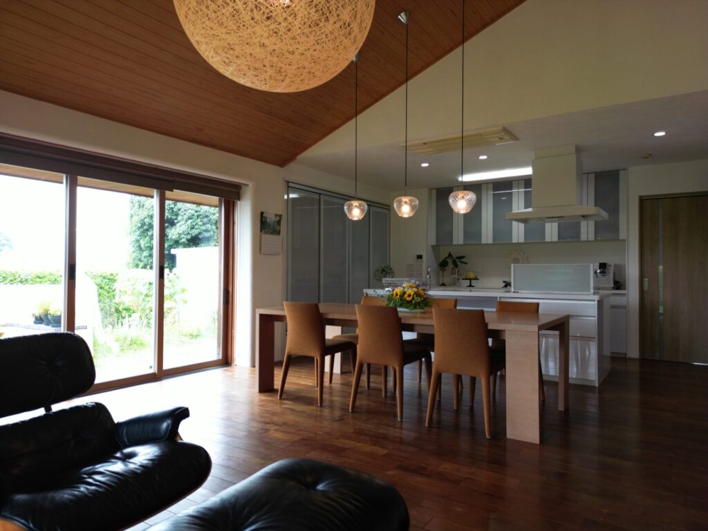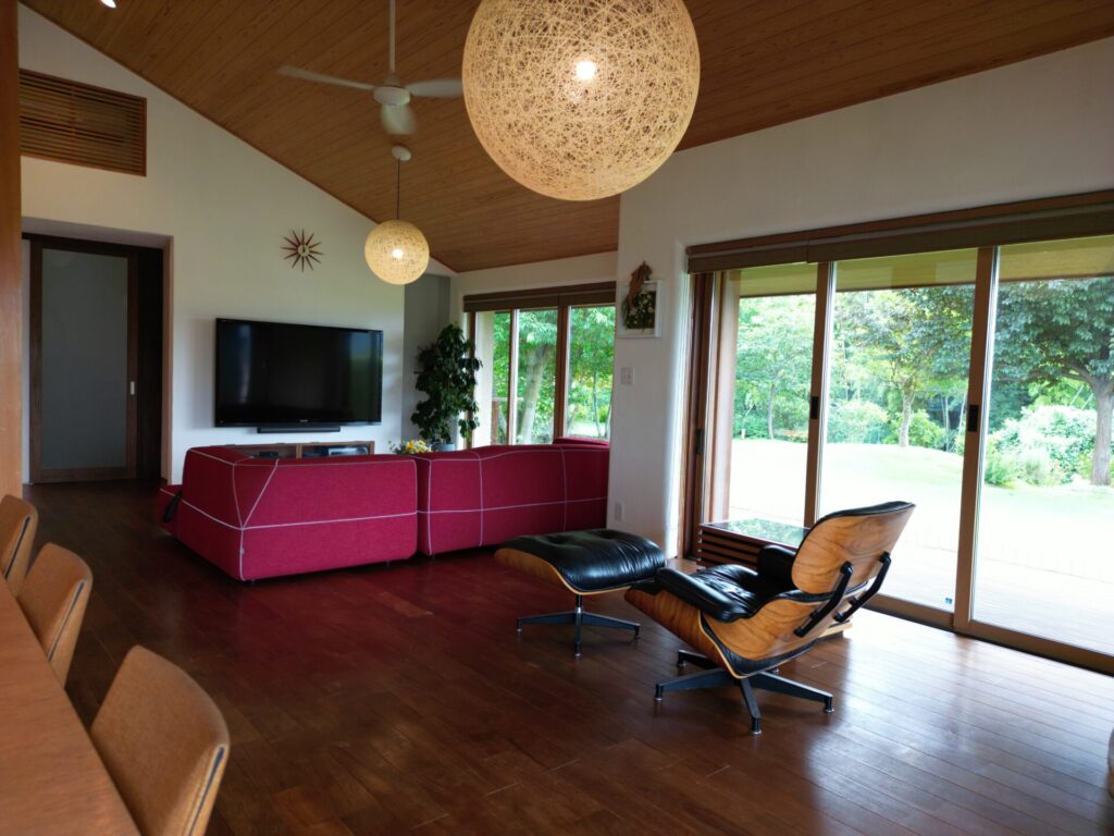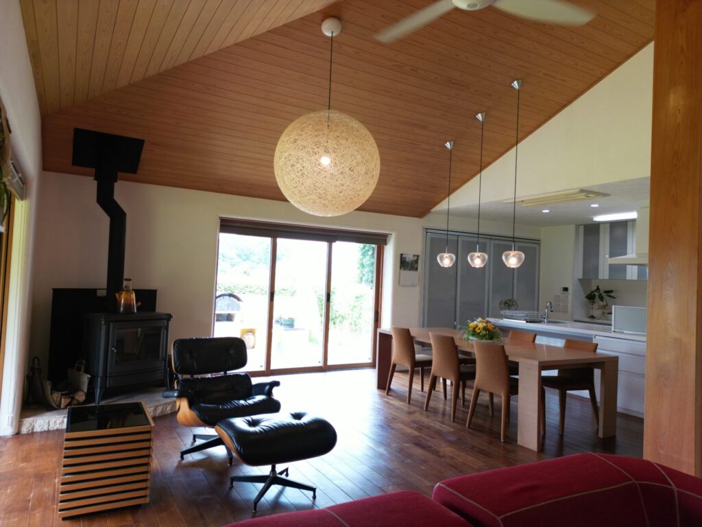 The 66㎡ living room, featuring high ceilings, wood-grain interior finishes, and a garden view, enhances the connection to nature and provides a relaxing atmosphere. A wood stove adds rustic charm, while air conditioning ensures comfort throughout the seasons. The proximity to convenience stores, supermarkets, makes it ideal for families, offering both practicality and ease of access to everyday necessities.