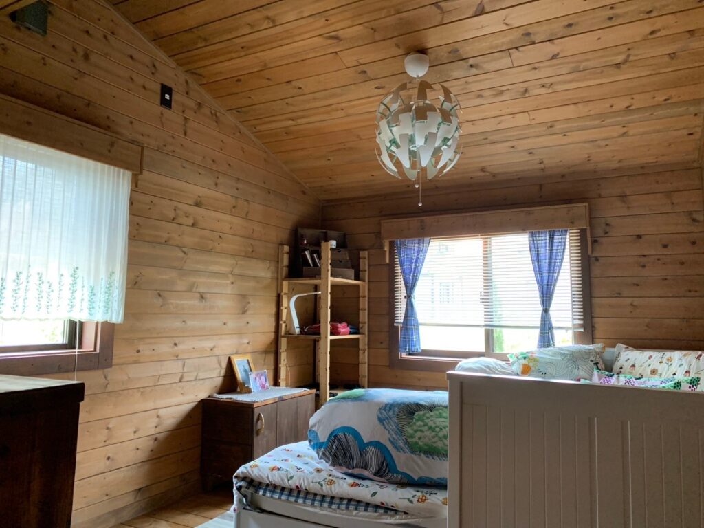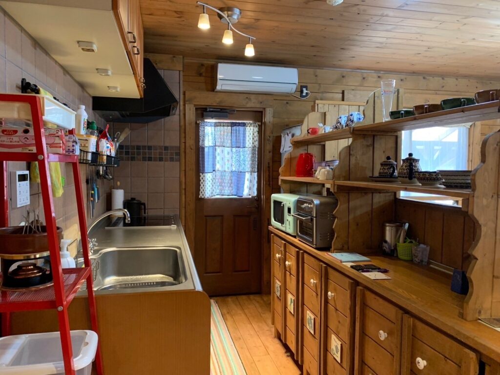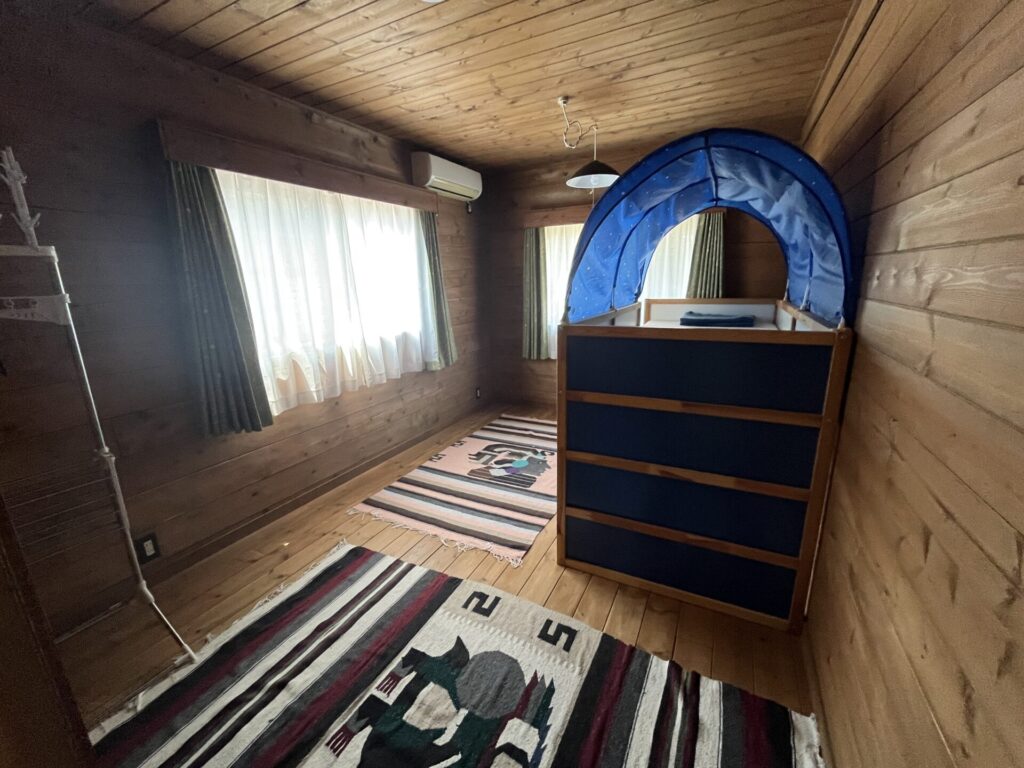 Kita-ku is known for rush green hills and beautiful Satoyama (farming land), the house sits in a tranquil residential area just 20 minutes drive from central Sannomiya. The house was built by a well know loghouse maker BESS (Former Big Foot). It’s solid, spacious, and well insulated.